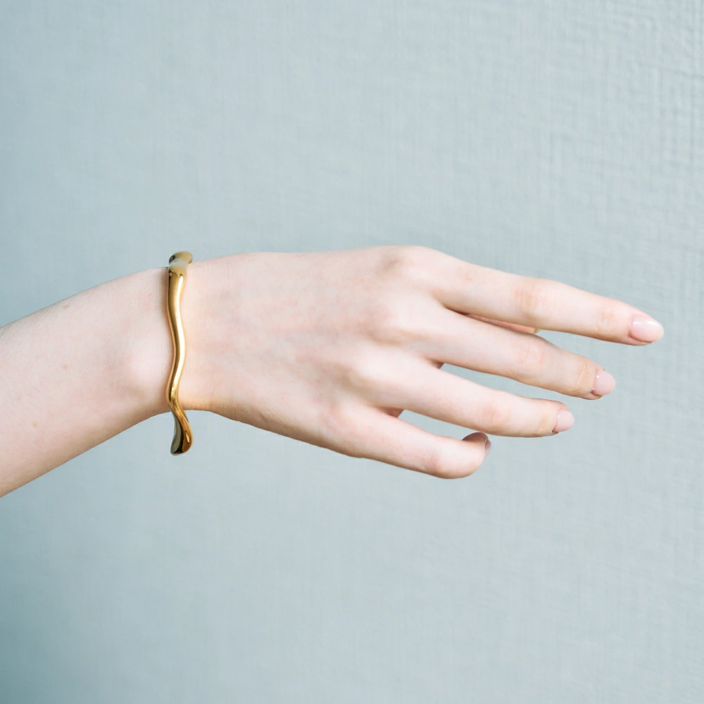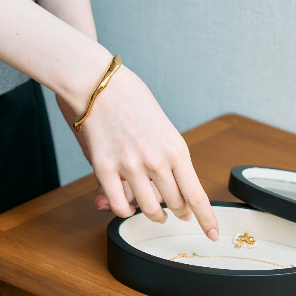 存在感があるデザインなので、これ一つで手首が華やかに見えます。