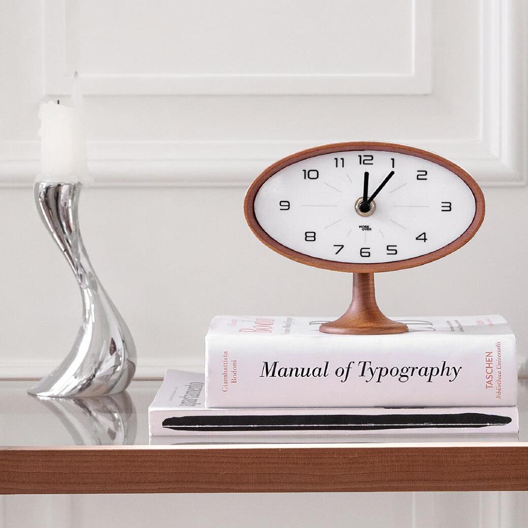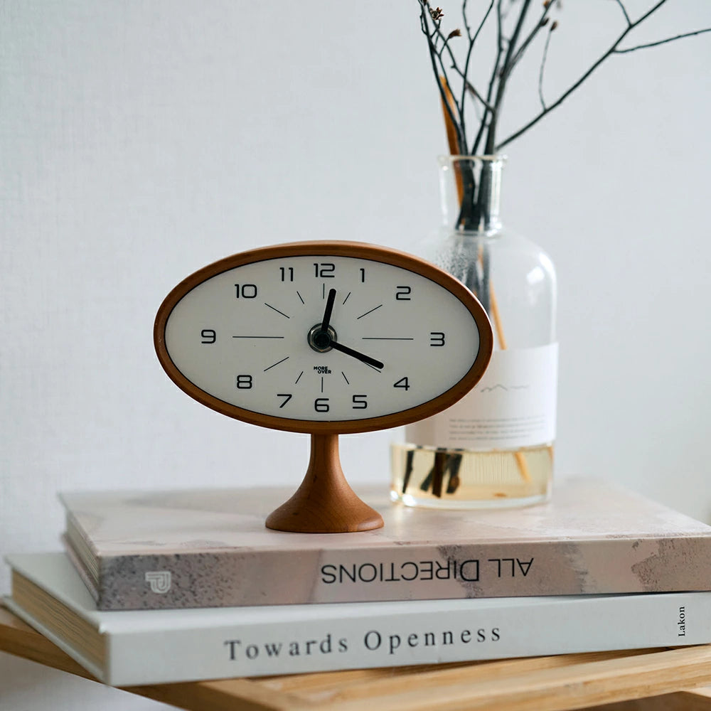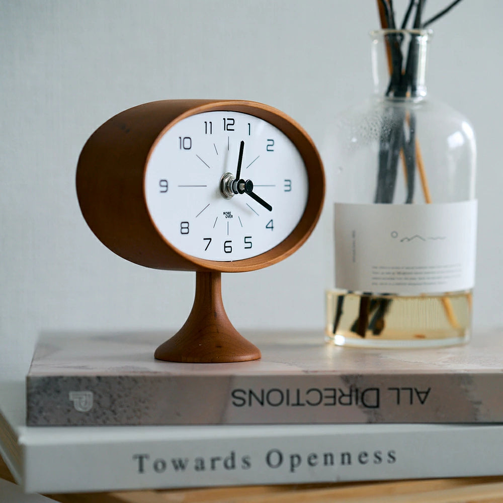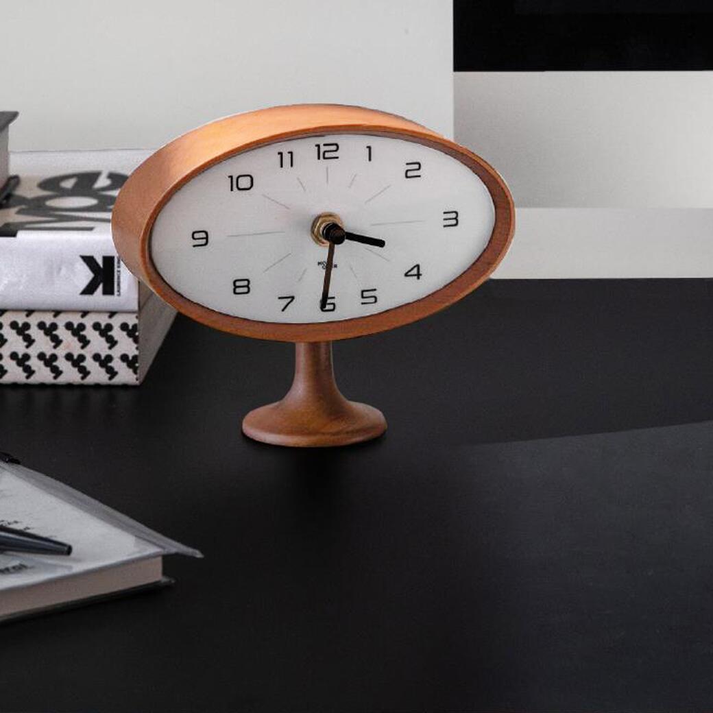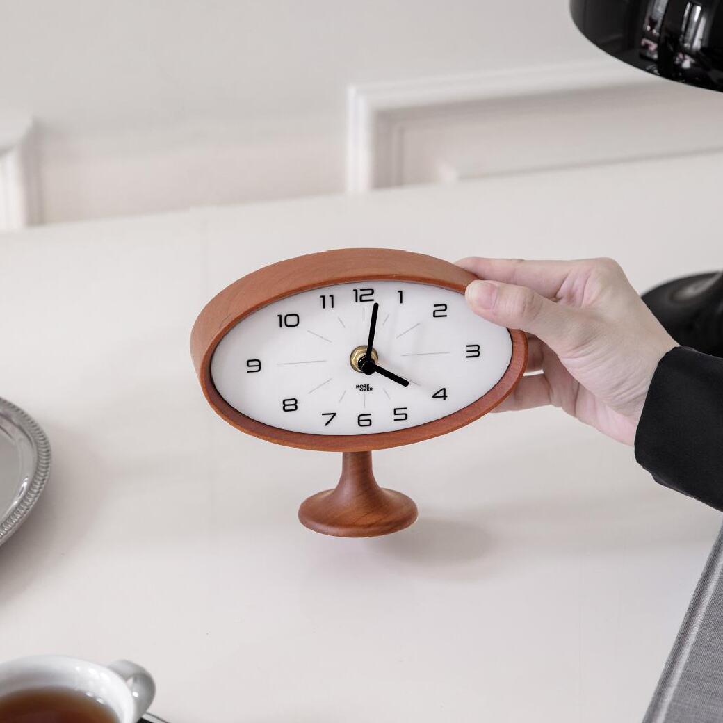 レトロな雰囲気が魅力の天然木のテーブルクロックです。70~80年代に流行した流線形を生かした近未来的なフォルムが特徴で、時計としての機能に加え、棚やテーブル、ベッドサイドに置くだけでおしゃれなアクセントになります。静音仕様のため、寝室でも音を気にせず安心してお使いいただける実用性も兼ね備えたアイテムです。