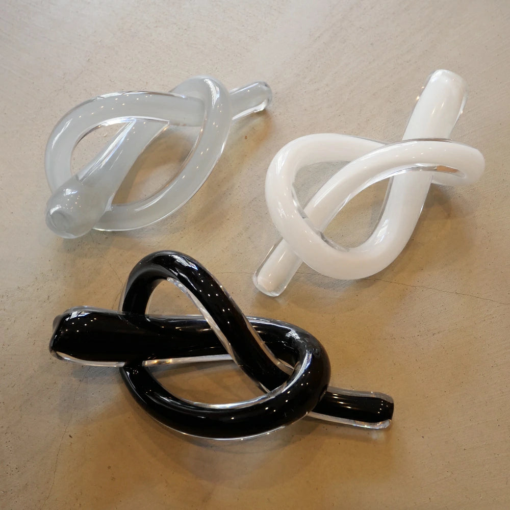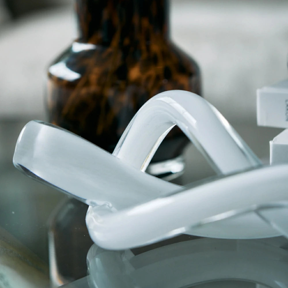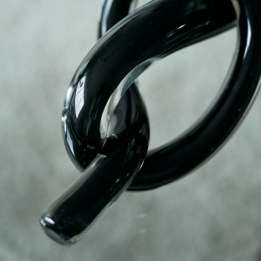 クリアで滑らかな質感が美しい、ガラス製の結び目オブジェ。