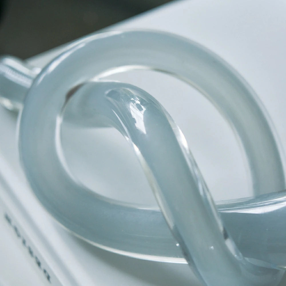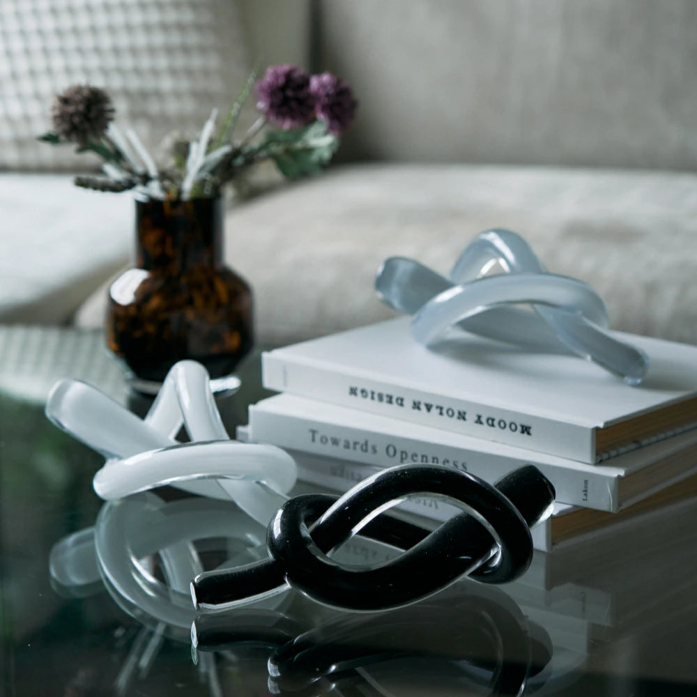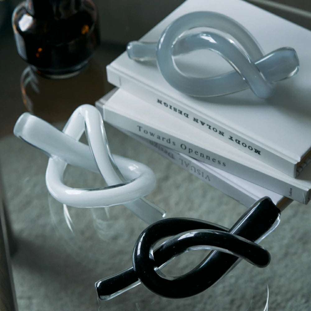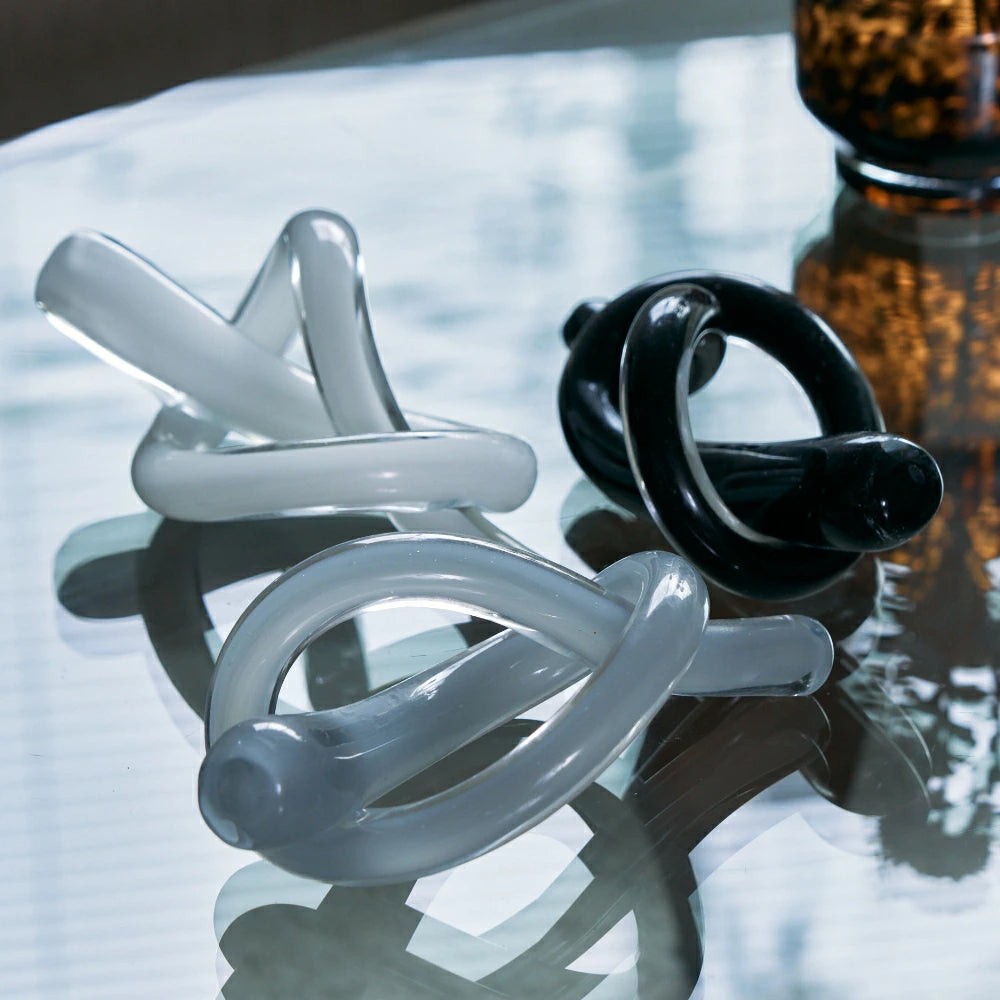 クリアで滑らかな質感が美しい、ガラス製の結び目オブジェ。