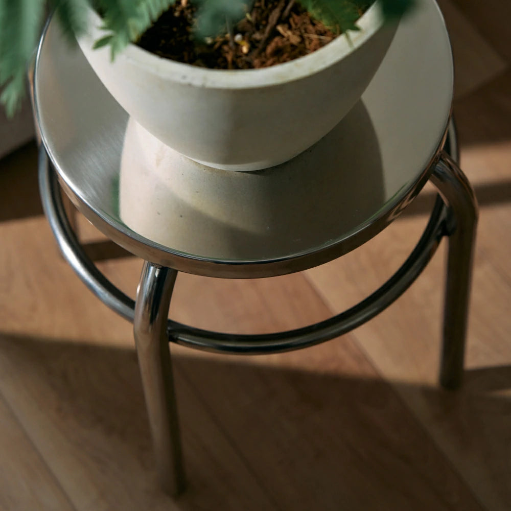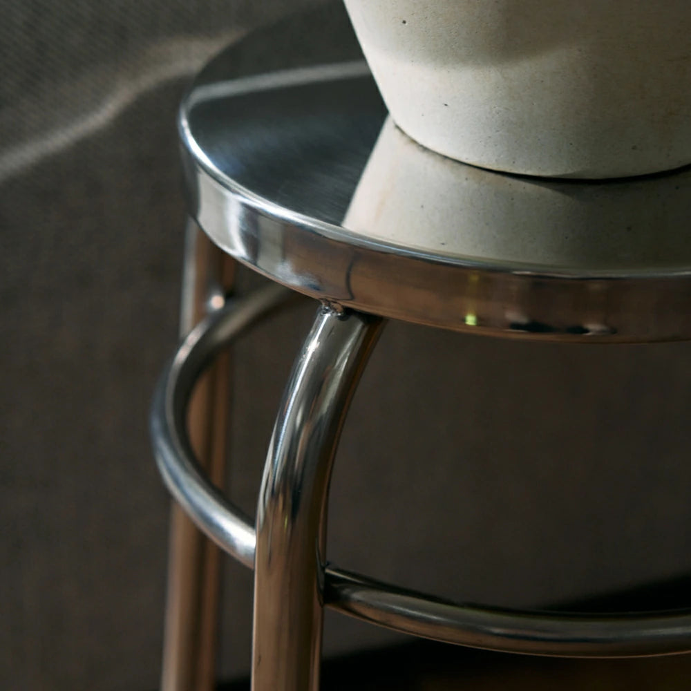 シンプルで無駄のないデザインが魅力のステンレス製丸形スツールです。頑丈なステンレス製で耐久性に優れ、安定感があり日常使いに最適です。