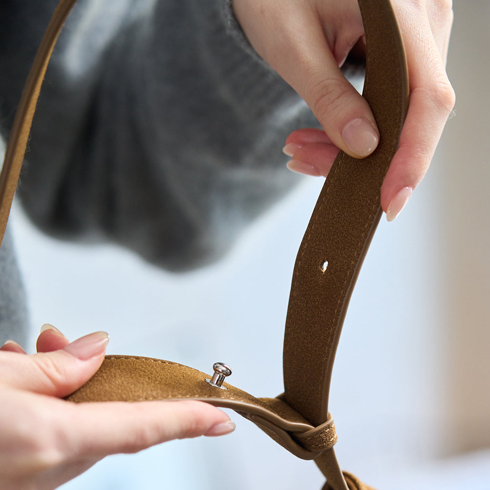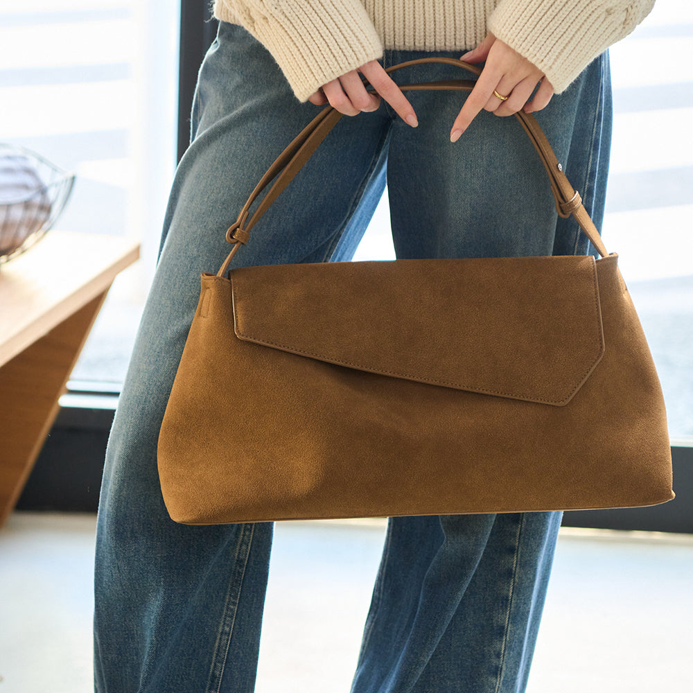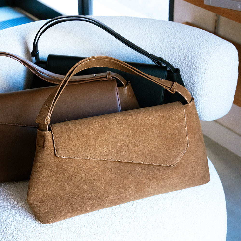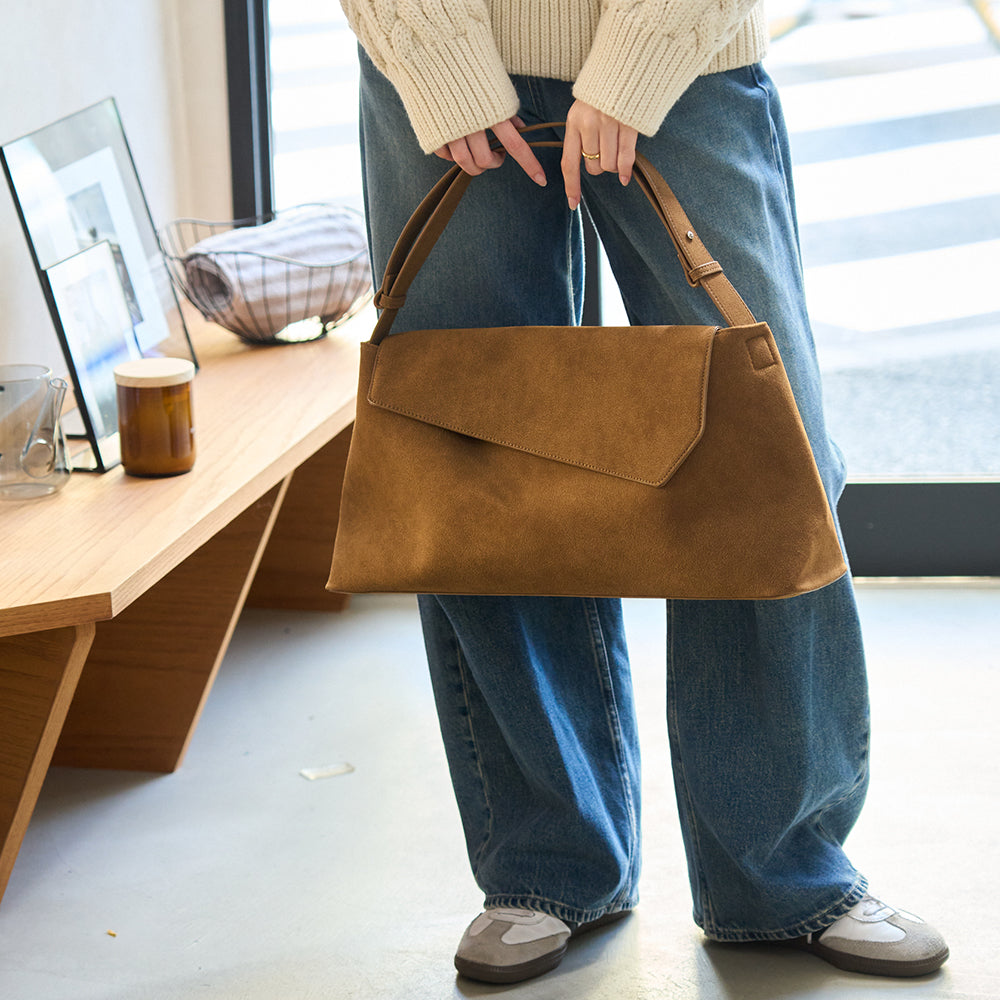 マットな質感が美しいPUレザーと、温かみのあるスエード調素材の2つの表情をご用意しました。