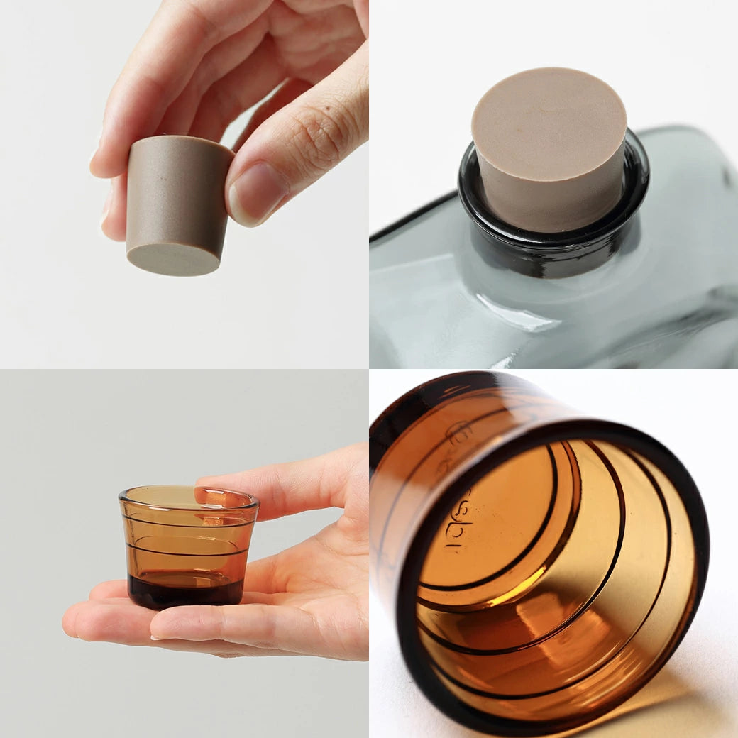 透け感が美しいグレーのボトルと、アンバーのコップのカラーコンビネーションが魅力的。
