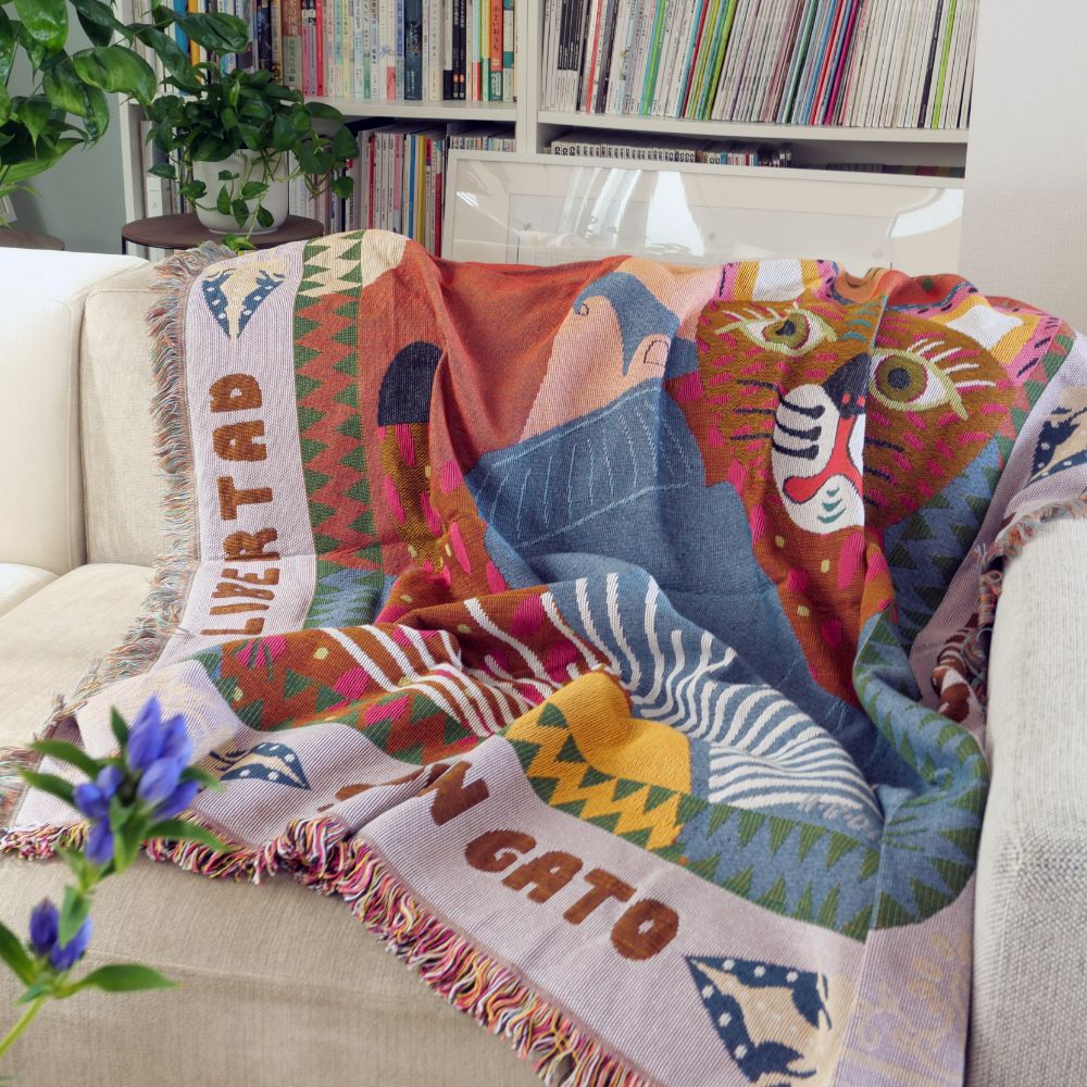 ソファやベッドにさらりと掛けて、肩から羽織れる大判サイズは膝掛けとして、鮮やかな色合いを活かしてタペストリーのように壁面アートとしてなど、様々なシーンでお部屋を彩ってくれます。