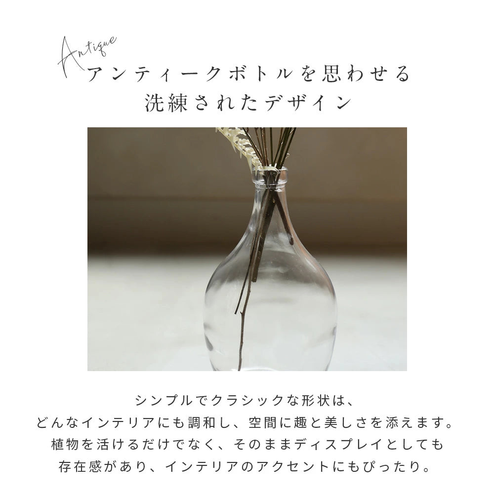 アンティークボトルを思わせる、懐かしくも洗練されたデザインのフラワーベースです。